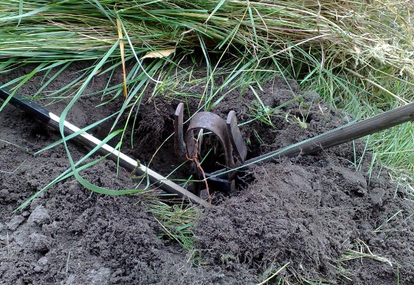 Gräsmattan blir varje höst full av små svarta högar. Efter ett tag så kommer det inga nya och allt lugnar ner sig. Men i år så förklarar vi krig mot gnagarna som gör dessa högarna. Här sätter vi första fällan. Må den största krigaren vinna.